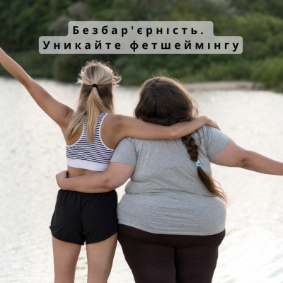 Уникайте фетшеймінгу (коли людину засуджують через її вагу) та фетфобії (неприязні до людей із більшою за середню масою тіла). Ці форми дискримінації можуть бути прихованими, але їхні наслідки – дуже реальні.