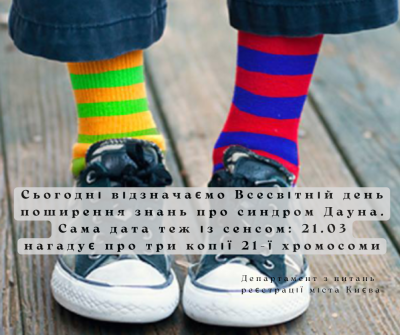 Сьогодні відзначаємо Всесвітній день поширення знань про синдром Дауна. Сама дата теж із сенсом: 21.03 нагадує про три копії 21-ї хромосоми